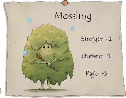 Es un espíritu joven, aún en formación, pero no ingenuo. Mossling sabe que proteger no significa imponerse, y que la fuerza rara vez es la primera respuesta correcta. Su vínculo con la magia natural es profundo y silencioso: no lanza hechizos visibles ni convoca grandes prodigios, sino que redistribuye, desvía, amortigua. Donde otros empujan, Mossling ofrece alternativas.