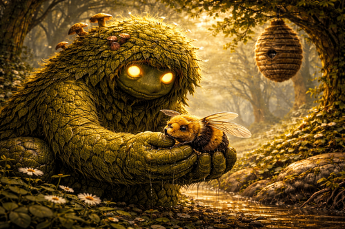 Me senté despacio junto a él. No debía tocarlo aún. Los abejorros cansados pueden reaccionar mal al contacto directo, y un aguijón no solo sería doloroso, sino ruidoso. Dejé que el musgo de mis manos se relajara, absorbiendo el calor del suelo, y esperé a que el zumbido se calmara un poco.