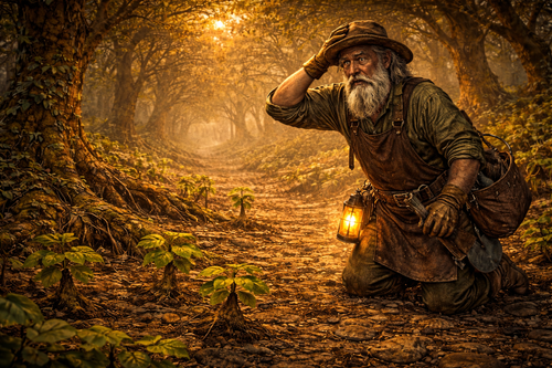 Evento del día (d20 → 5). Un cuidador de árboles angustiado ha perdido a su pequeño grupo de retoños.