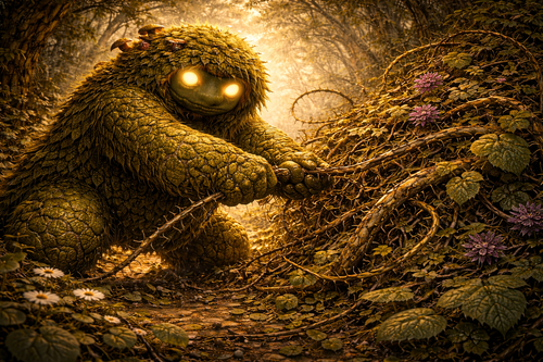 Evento del día (d20 → 13). Un enredo invasivo de malas hierbas se está volviendo demasiado difícil de mantener.