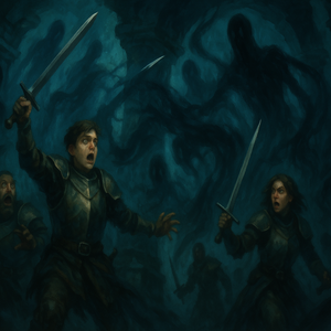 Las espadas salieron de sus vainas en un solo movimiento, y en el instante en que sus filos se elevaron, las sombras se movieron hacia ellos. Salieron de todas partes, desde los callejones oscuros, desde los rincones de piedra cubiertos de algas, desde cada grieta de la ciudad olvidada. Los Guardianes de la Ciudad Hundida atacaron.
