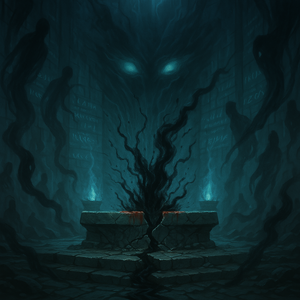 Tentáculos de sombra y corrupción se deslizaron por las ruinas, retorciéndose en el aire como si el mismísimo océano estuviera retorciéndose de dolor, y entonces, una masa de carne con múltiples ojos, profundos como el abismo, emergió, clavando sus miradas en Saria. La reconocieron. Ella era la Guardiana, tenía la llave.