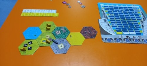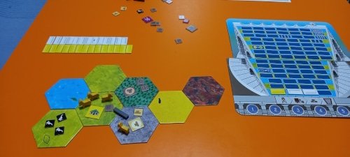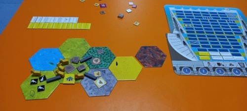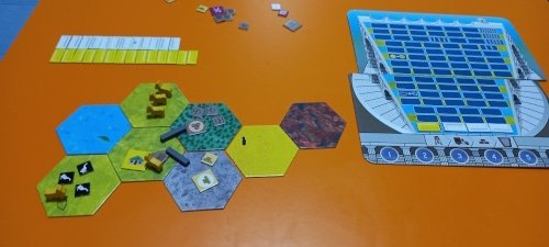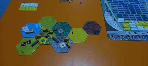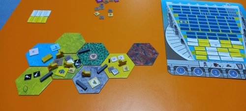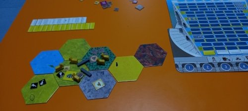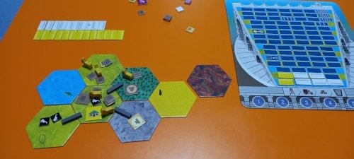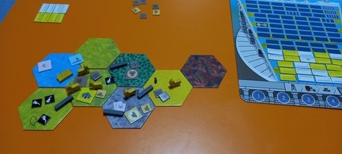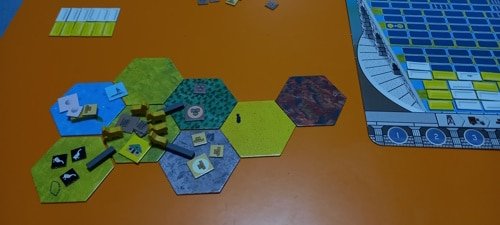 NOTA: según las reglas del juego no se puede construir en desierto, pero no me di cuenta. Debería haber construido en la montaña, lo que hubiese supuesto un turno más de la partida.