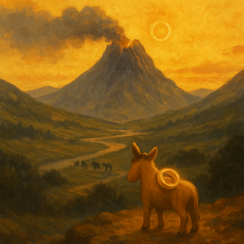 El primer día nos hallábamos en el valle, junto al lago, cuando el mensajero descendió desde las cumbres. Su voz temblaba como el viento entre los juncos: el antiguo y olvidado dios de la montaña había despertado. Decía que su aliento podía hacer arder los campos y quebrar la tierra, y que sólo una ofrenda, un anillo forjado por manos mortales, podría contener su furia.