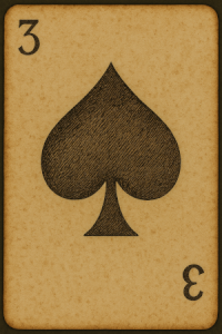 Cuando estoy a punto de largarme de allí, veo algo tirado en el suelo: una carta manchada con sal seca entre los barriles. No es un naipe cualquiera, es un tres de picas, un emblema antiguo, usado entre asesinos de puerto, envenenadores de la Costa de los Cuervos, y entre las “hermanas silenciosas” del Gremio del Velo. Pella Dientes de Navaja llevaba esa carta cosida por dentro de su chaqueta, justo en el corazón, como talismán. Cuando le pregunté por ella, me lanzó una mirada que me hizo temblar y dijo: “Esa carta es promesa. Si alguna vez no vuelvo… sabrás que fue por eso.”