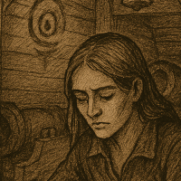 El crujido de las maderas acompaña mi descenso a la oscuridad húmeda de la bodega. El aire se espesa como si intentara aferrarse. Nadie más baja conmigo. Las voces de la cubierta son sólo ecos lejanos en medio del espeso silencio de abajo.