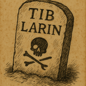 Resbalé y caí de rodillas junto a la piedra. Sentí el barro empaparme las manos y el musgo frío bajo mis dedos. Cuando levanté la vista, la antorcha de Pella iluminaba justo lo que había delante de mí: una lápida, clavada entre barro y musgo. No parecía reciente, pero tampoco estaba carcomida por el tiempo. Y tallado sobre la piedra, con un cuchillo mal afilada, estaba mi nombre: ‘TIB LAREN’. Debajo, el símbolo del Bone Blade, torcido, como grabado con prisa.